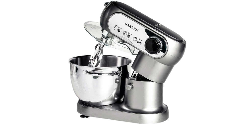 В комплекте стандартные насадки — для замешивания теста, взбивания крема и крышка для чаши с отверстием для добавления ингредиентов в процессе работы. Режимы работы — 6 скоростей + импульсный режим, разгон венчиков от минимальной до максимальной скорости вращения поможет при работе с густыми смесями. Управляется поворотным переключателем, подсвечивается синим цветом во время работы. Для предотвращения поломки предусмотрено аварийное отключение при перегреве двигателя. Все основные рабочие элементы выполнены из высококачественной стали, чаша оснащена ручками для удобства. Цена — 18 000 рублей.