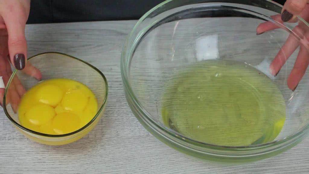 Первое, что нужно сделать для того, чтобы быстро взбить белки без миксера, следует аккуратно отделить желток от белка одним из трех возможных способов. Для этого нужно: