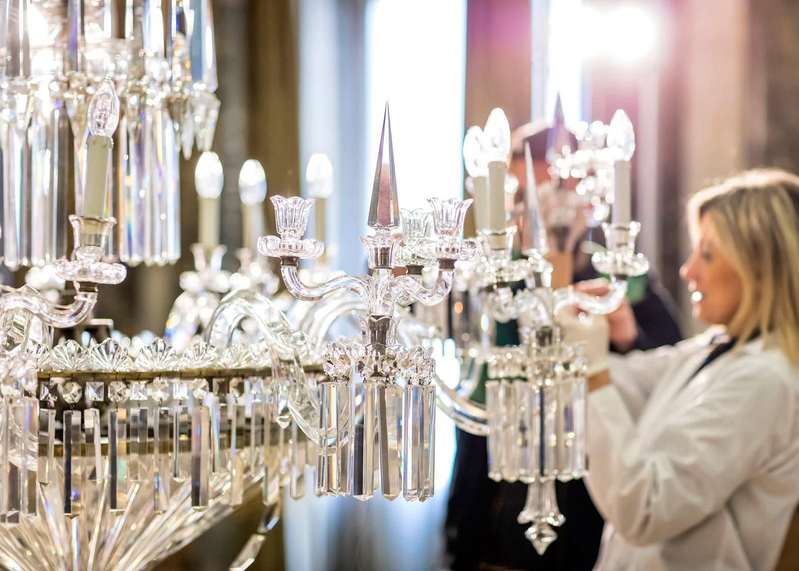 При работе с хрусталем надевайте тканевые перчатки, это предотвратит появление на поверхности следов от пальцев, которые сухой тряпкой уже не оттереть.