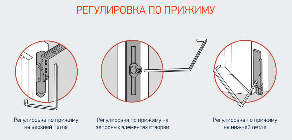Основная задача регулировки – установление необходимой степени прижима. Может проводиться по горизонтали или по вертикали. Для работы потребуются плоскогубцы, отвертка и ключ-шестигранник (чаще 4 мм).