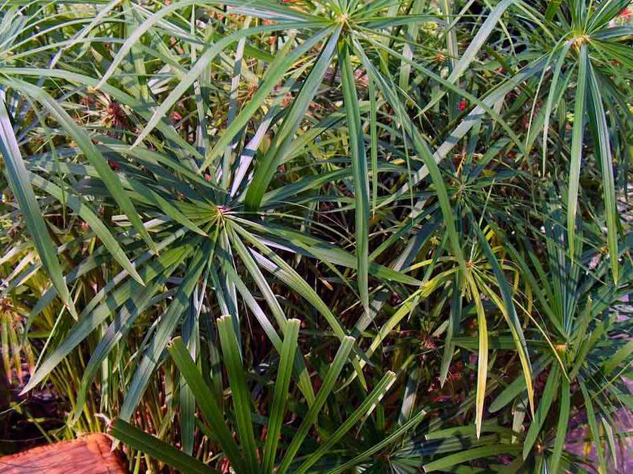 Этот вид немного похож на Циперус Хелфера — такой же пучок травинок, растущий прямо из влажной земли и немного пальмовидных листьев. Но растет в горшке. Очень эффектный цветок. Хорошо размножается семенами, купленными в магазине. Но опасен для домашних животных.