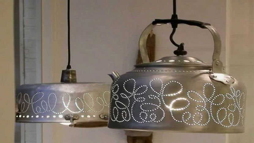 Еще один необычный вариант: можно перевернуть чашки с блюдцами, аккуратно (специальным сверлом для керамики) просверлить в них отверстия и вставить плафоны. Отличная идея для кухни или столовой.