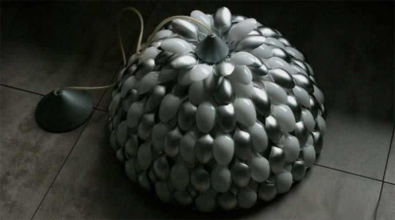 Используя нехитрые приемы и несколько упаковок одноразовых ложек или вилок? можно создать отличный оригинальный светильник, который украсит ваш интерьер. Подобные абажуры можно использовать практически в любом помещении — на кухне, в прихожей, на балконе, и даже в спальне.