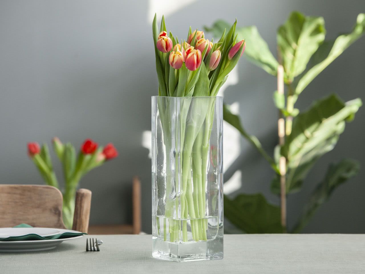 - Немалое значение имеет размер и форма вазы. Вода должна покрывать не меньше половины высоты цветов, лучше две трети.
