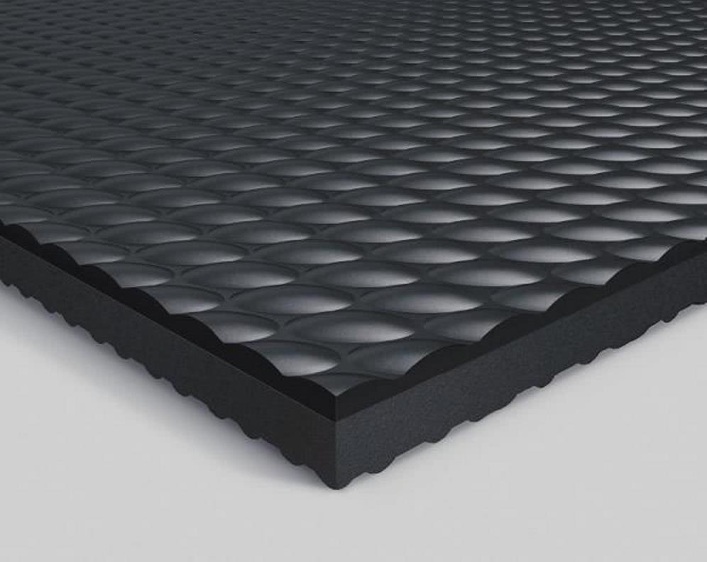Этот вибромат нельзя отнести к категории бюджетных, однако, изделие может использоваться в условиях низких и высоких температур. За счет этого ключевого аспекта коврик можно укладывать под любую технику, вне зависимости от уровня обогрева помещения. Поверхность у девайса рельефная, за счет чего воздушные массы беспрепятственно будут проходить от поверхности пола к днищу конструкции