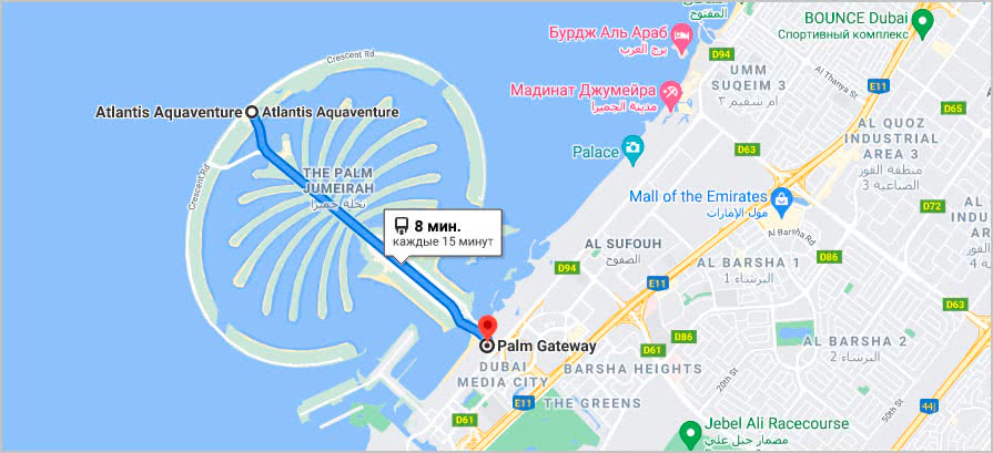Монорельс на Джумейру и обратно ходит каждые 15 минут: