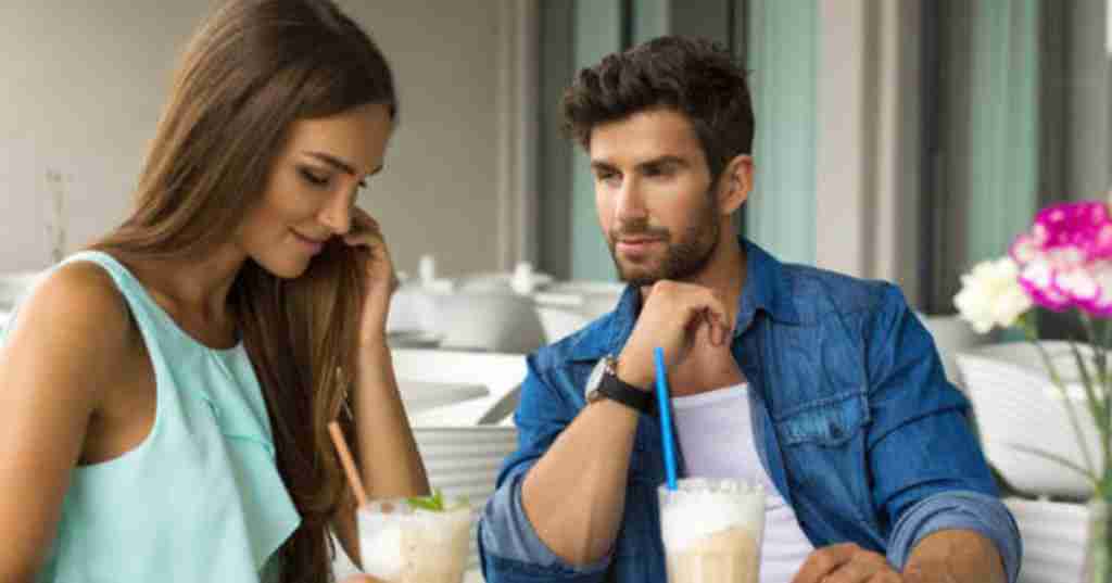 В общении с женщиной мужчина ведет себя напряженно и неестественно.