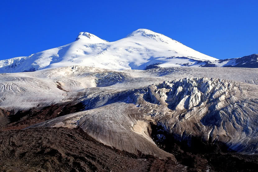 Если обсуждать горы России, Эльбрус – одна из самых прекрасных и диких. На ее склонах приютилось множество ледников, общая площадь которых составляет 134 км2. Наиболее известные и крупные из них – Баксанский, Терскол и Гарабаши.