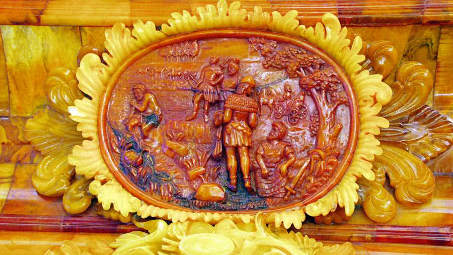 Элемент убранства из Янтарной комнаты в Государственном музее-заповеднике «Царское Село»