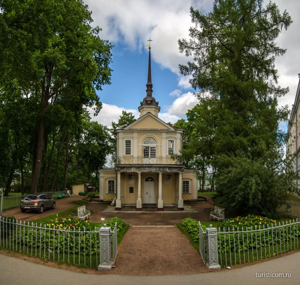 Неподалеку от Екатерининского дворца есть церковь — самое старое здание Пушкина. Время его постройки относится еще к царствованию Елизаветы Петровны. Она любила уединенно молиться в этом укромном уголке, скрытом от посторонних глаз. Приходили сюда и известные лицеисты.