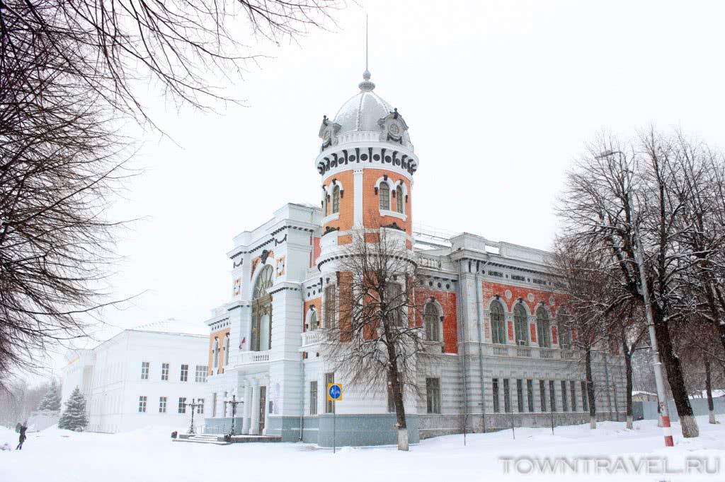 Следующее по курсу здание — Ульяновский краеведческий музей им. И.Гончарова. Построенное в 1916 г., выполнено в стиле Ренессанса и имеет общие черты с замковой готической архитектурой. К созданию этого памятника архитектуры приложил руку французский одессит по имени Август Шоде.