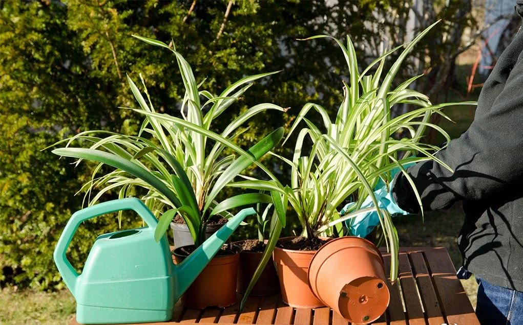 Разросшиеся хлорофитумы можно размножать и делением куста, совмещая этот процесс с пересадкой.