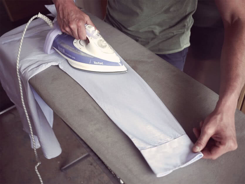 Проще всего гладить рукава на специальном приспособлении, которое входит в комплект современных гладильных досок. А также можно для этого использовать скрученное полотенце. Это не только поможет избежать стрелок, но и значительно ускорит процесс глажки.
