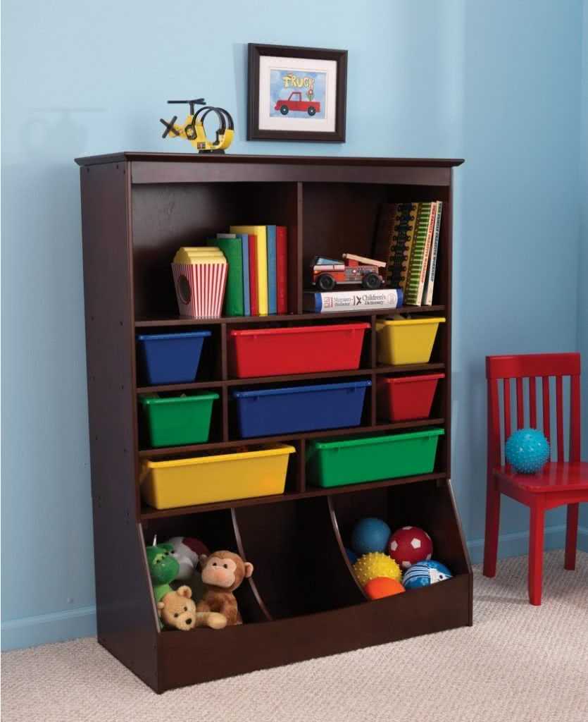 Система ящиков для хранения игрушек: для сортировки различных игрушек используйте систему ящиков-органайзеров для игрушек. Они поставляются с множеством пластиковых ящиков меньшего размера, иногда до 12, которые располагаются в наклонных многоярусных стеллажах. Так как ящики идут без крышек, то все игрушки легко доставать.