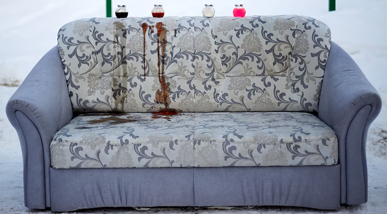 Кроме того, поверхность дивана придется закрыть марлей, иначе на деликатном материале может образоваться уже пятно иного характера.