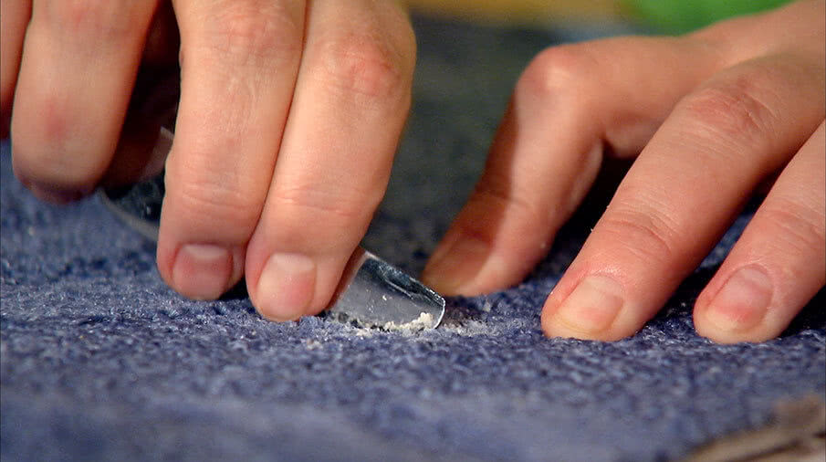 Механическая чистка помогает убрать восковые наплывы, капли и верхние, объемные слои. Осуществляйте такой способ только после того, как восковая текстура застыла и нет риска увеличить площадь загрязнения. В механической чистке важна аккуратность и неторопливость движений.
