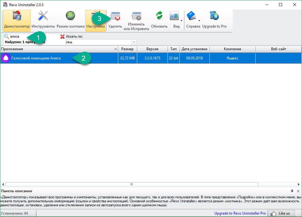 - Скачайте любое приложение для удаления и очистки файлов, принцип их работы схож. Мы рассмотрим инструкцию для приложения Revo Uninstaller.
