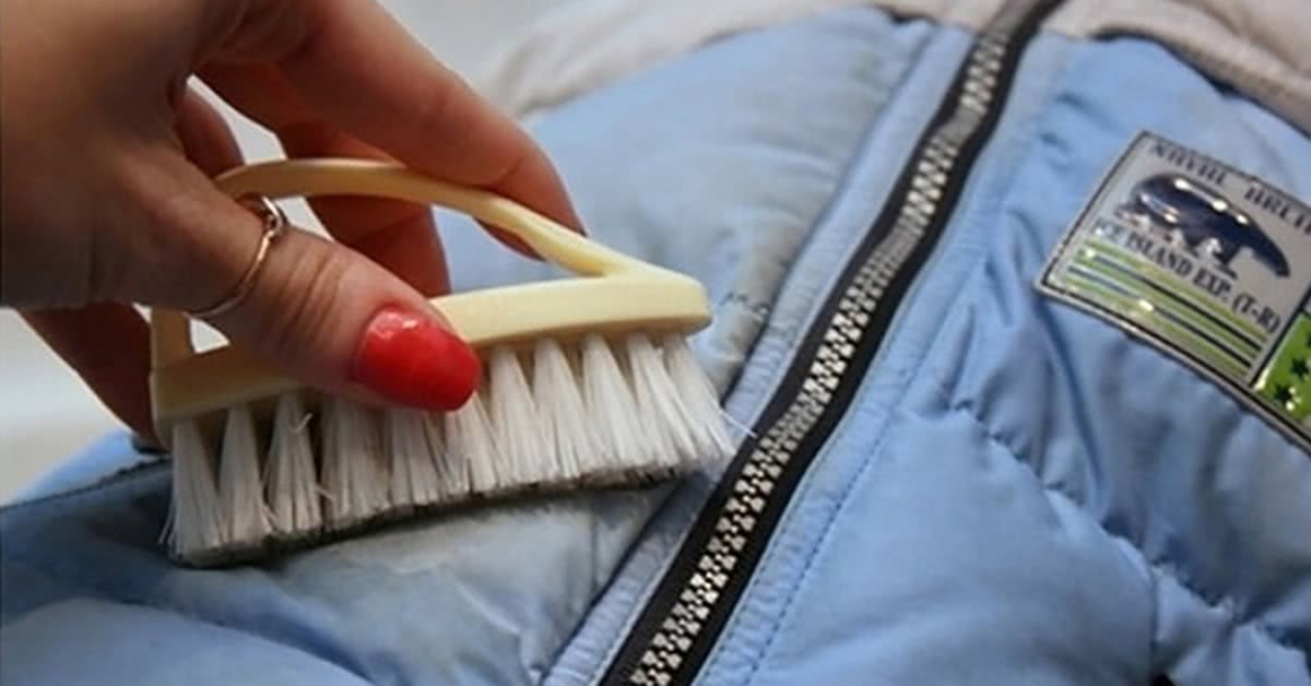 - При помощи мягкой щетки нужно очистить одежду от инородных предметов: пыли, шерсти, грязи и т.д.