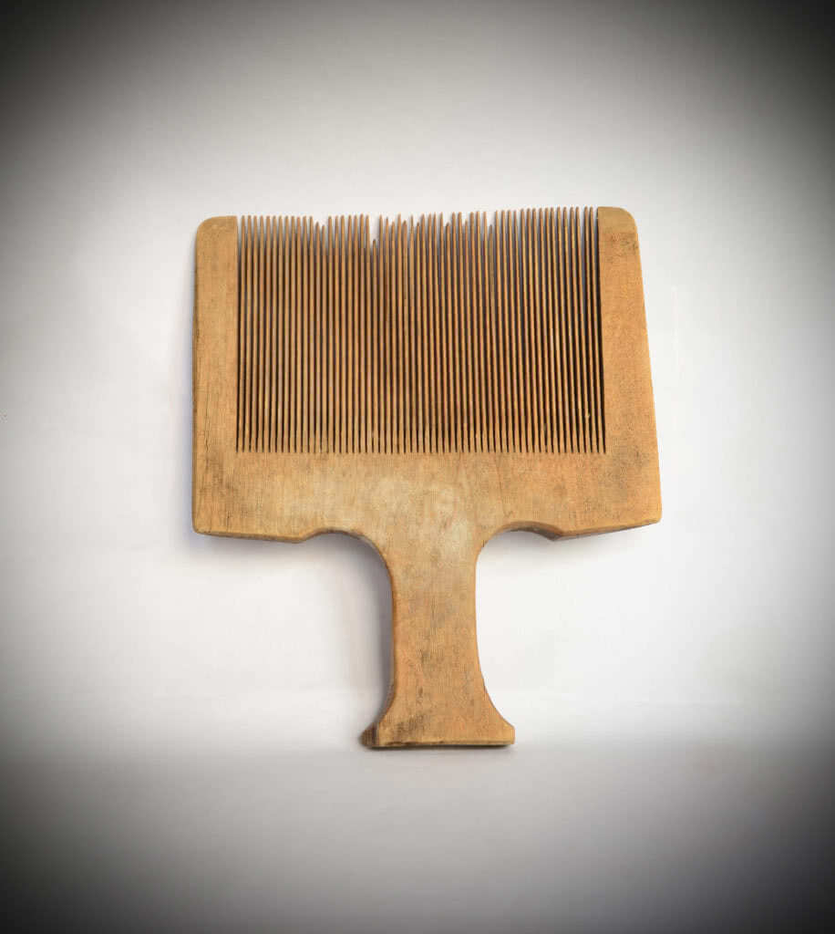Сначала нужно тщательно очистить деревянные зубья от волос. От качества проделанного этапа, в дальнейшем будет зависеть весь процесс.