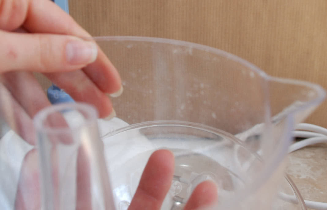 - Для мойки увлажнителя взять слабый раствор уксусной кислоты (25 мл уксуса на 0,5 л воды) или лимонной кислоты (в пропорции: 2-3 ч. л. кислоты на 1 л воды).