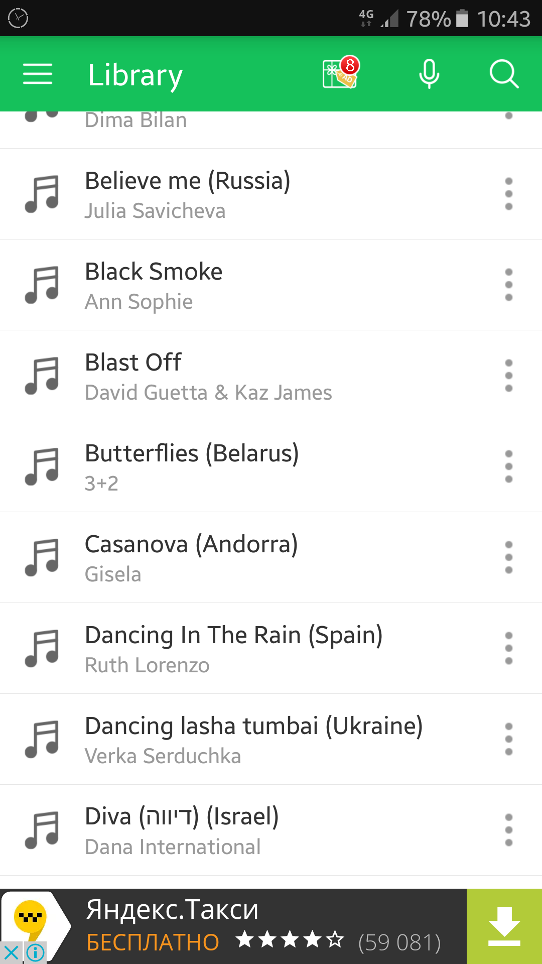 - Все музыкальные файлы будут отображены в списке. Необходимо найти нужный музыкальный файл;