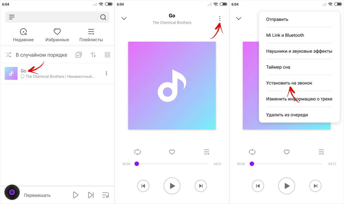 На смартфонах от китайского концерна Xiaomi есть встроенный плеер под названием «Музыка». Им можно воспользоваться, чтобы ставить скачанные аудио на звонок. Это делается следующим образом: