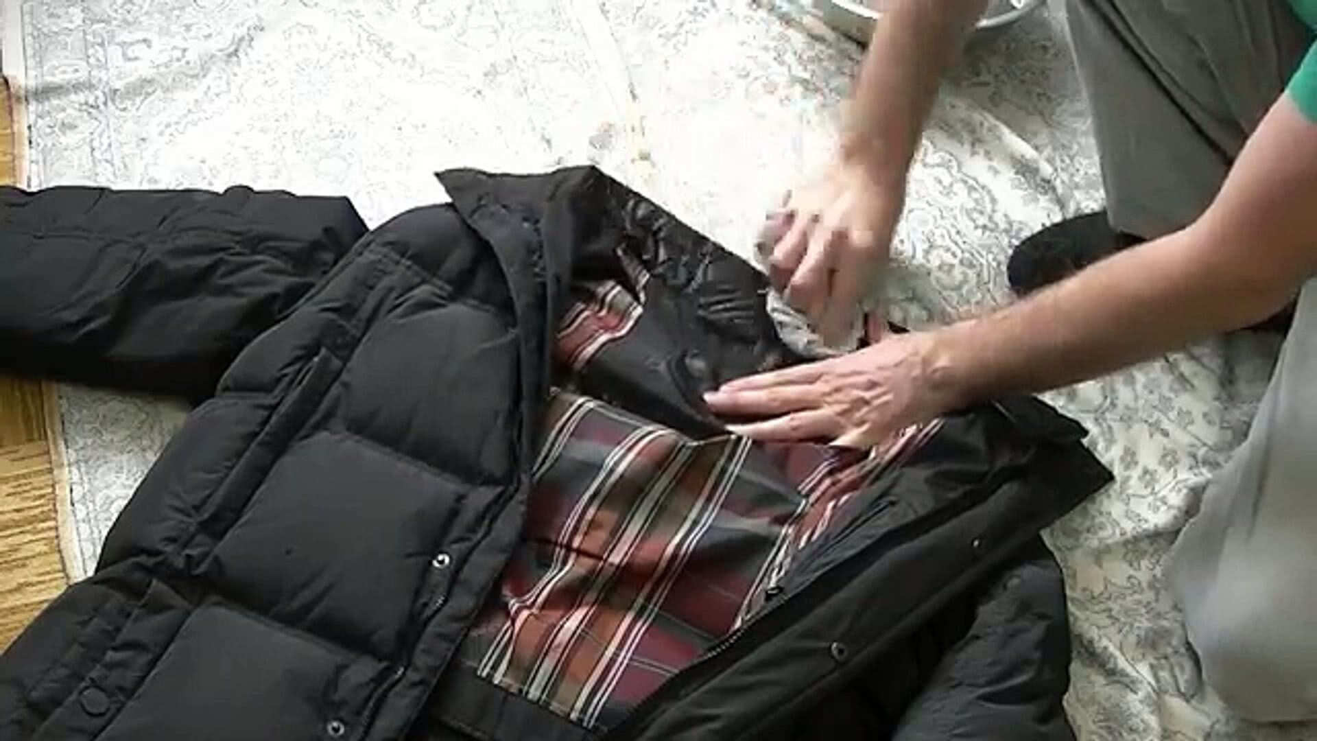После этого внимательно осмотрите карманы и достаньте из них все мелкие вещи. Убедитесь, что на пуховике нет дырок, все швы прочные и надежные. Если вы обнаружите повреждение, его необходимо зашить. Если на пуховике есть отделка из натурального меха, снимите ее. Обработайте трудновыводимые пятна при их наличии.