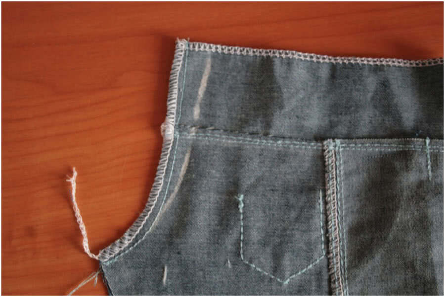 Пояс был отпорот. Мне повезло, поскольку внутренняя часть на бедрах оказалась двойной, отсюда появилась возможность немного удлинить верхнюю часть за счет уже имеющегося материала.