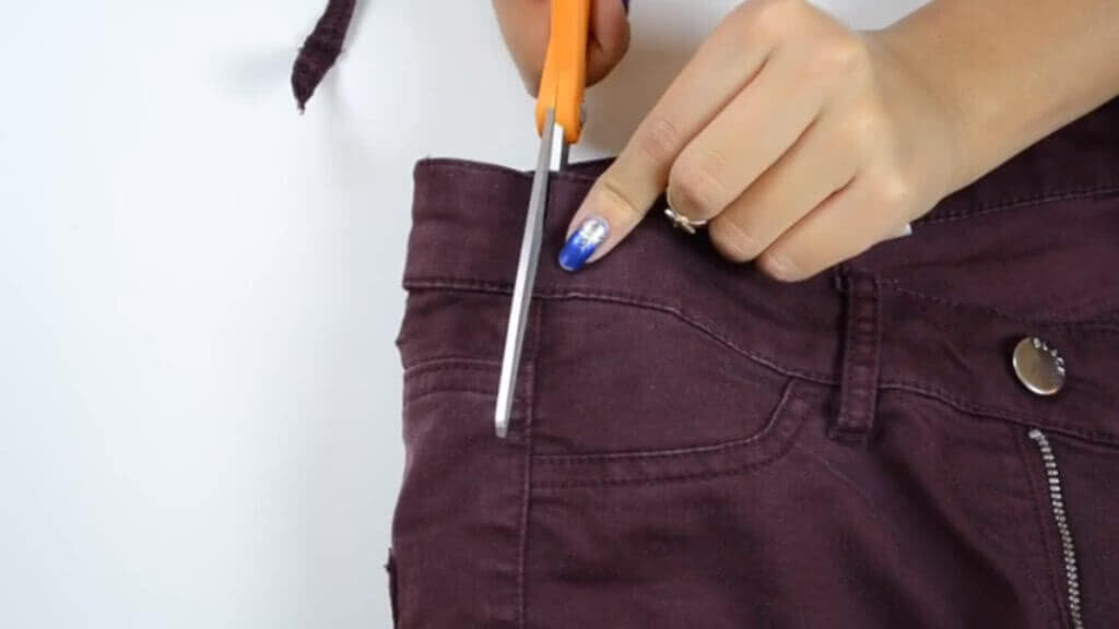 - Отпороть пояс и разрезать в месте вшивания ленты.