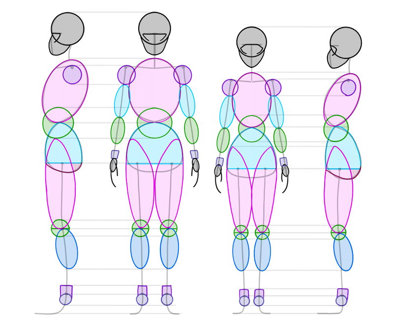 Тело в аниме можно изобразить с помощью простых форм – сфер и овалов