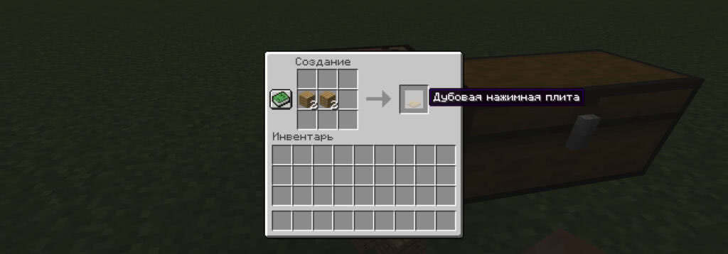 Нужно добыть две доски либо каменя и поставить их в клетки крафта горизонтально друг возле друга. Получится нажимная плита соответствующего типа. Они отличаются только прочностью и внешним видом;