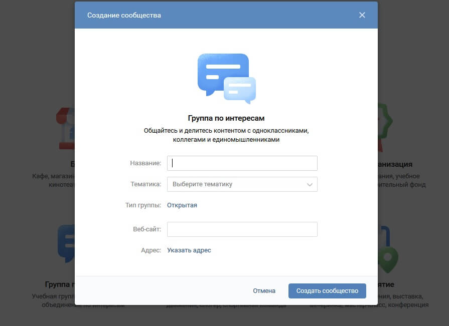 Выбираем тип сообщества