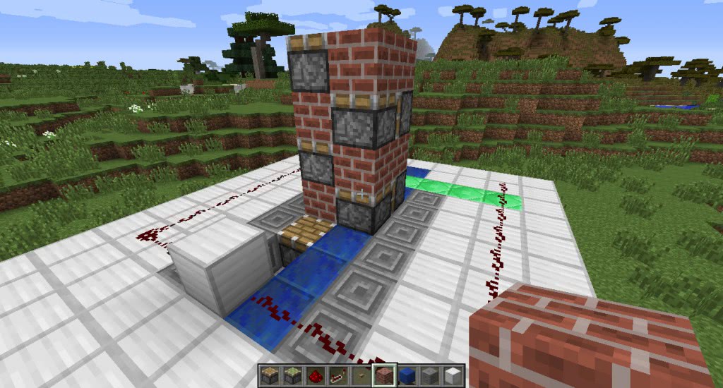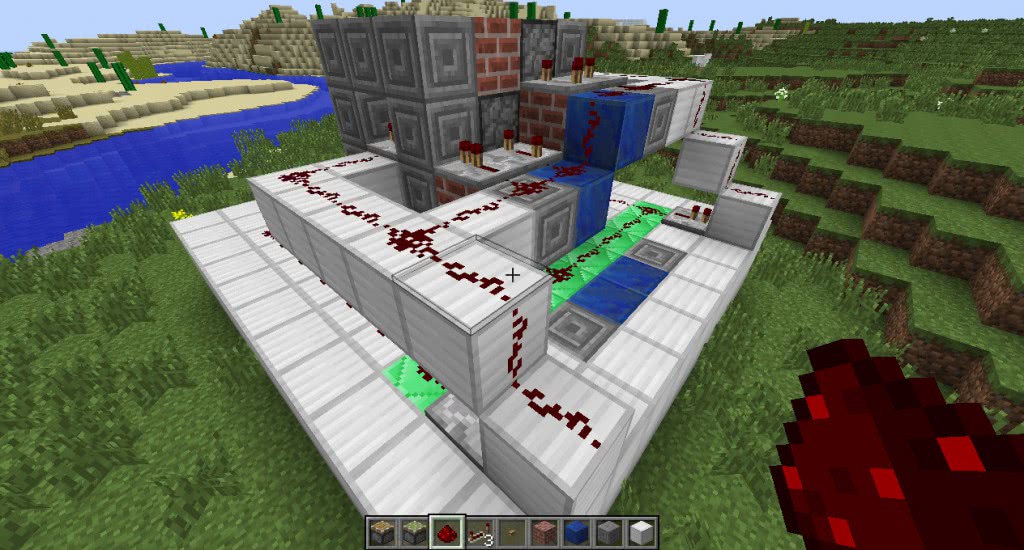Итак, для крафта лучше всего перекинуть свой мир в режим креатива, а все потому, что в отличии от предыдущего варианта, количество материалов здесь уже совсем нешуточное. Нам понадобиться 12 обычных поршней, 2 стака редстоун пыли, 4 стака твердых материалов, 10+ повторителей, 4 кнопки и 8 деревянных люков. Работа предстоит на высоте, так что разлить пару ведер на месте стройки совсем не помешает.