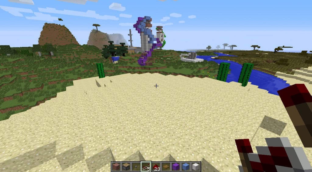 Однако у этого лифта есть небольшой недостаток — он может только поднимать вверх. Спуститься на нем вам не удастся, поэтому придется придумывать обходные способы. Самый просто и эффективный — это вырыть рядом с лифтом бассейн, в который потом можно спрыгивать с любой высоты.