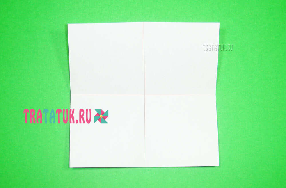 Сложите ее вдвое. Раскройте и сложите вдвое, соединяя две другие стороны.