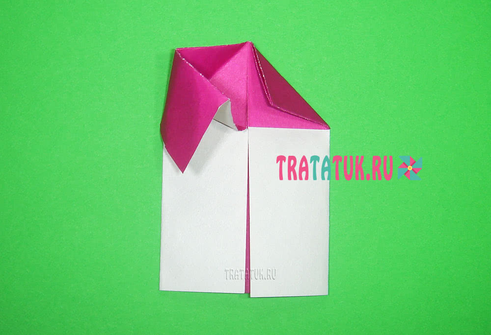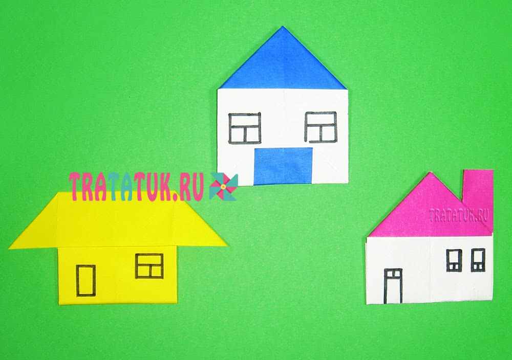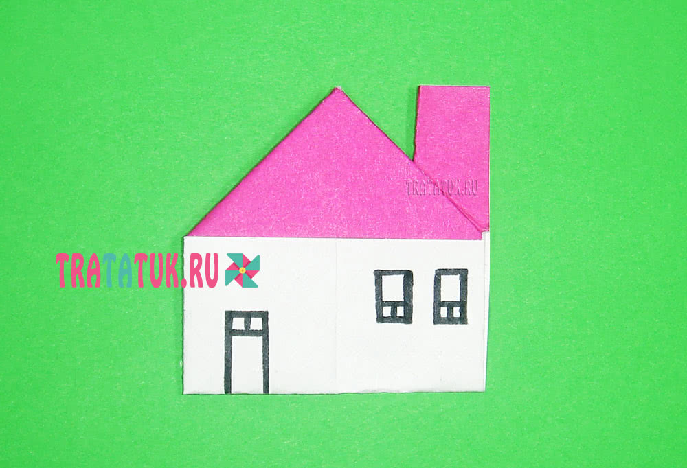 Переверни, нарисуйте окна, дверь. Оригами домик готов.