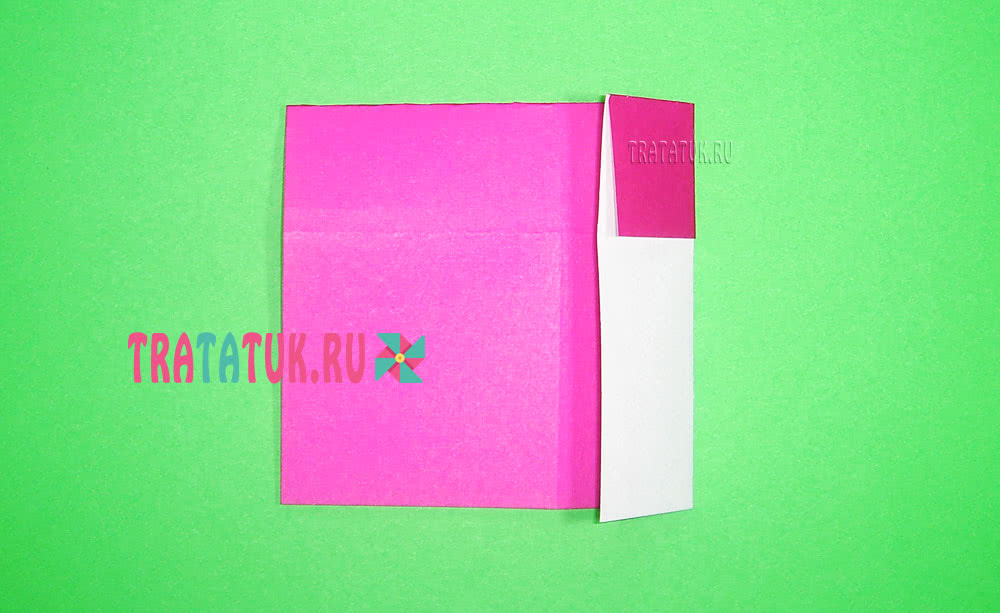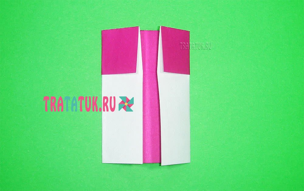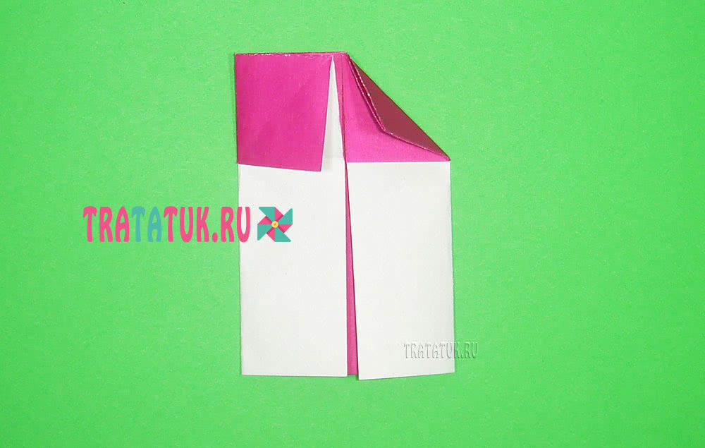 Переверните на другую сторону и согните боковые части до сгиба в центре.