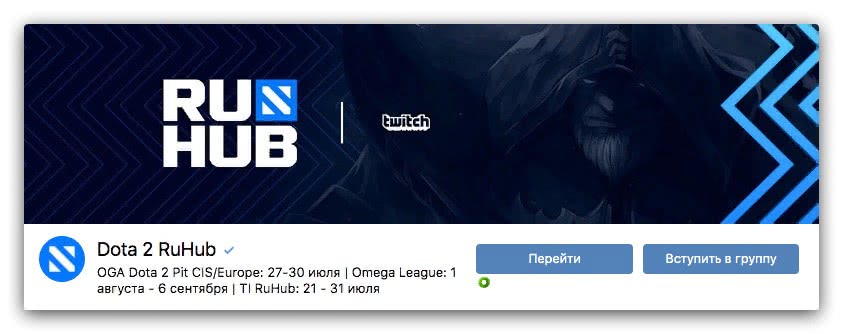 В пример обложки – Dota 2 RuHub – сообщество студии RuHub, специализирующейся на киберспортивных трансляциях, по дисциплине Dota 2.