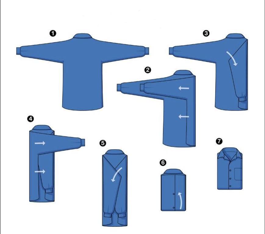 - Сложите одежду сначала вертикально, затем горизонтально.