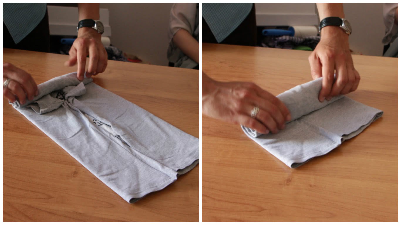 Вещи, упакованные таким образом неизбежно помнутся, а если складывать так каждый день — быстро перейдут в разряд половых тряпок. Но для перелета годится. Обязательно убедитесь, что там, куда вы направляетесь, есть утюг, чтобы привести гардероб в порядок.