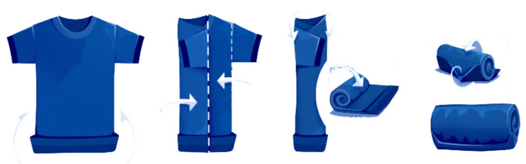 Переверните сложенную вещь «лицом» вверх и укладывайте в дорожную сумку или шкаф.