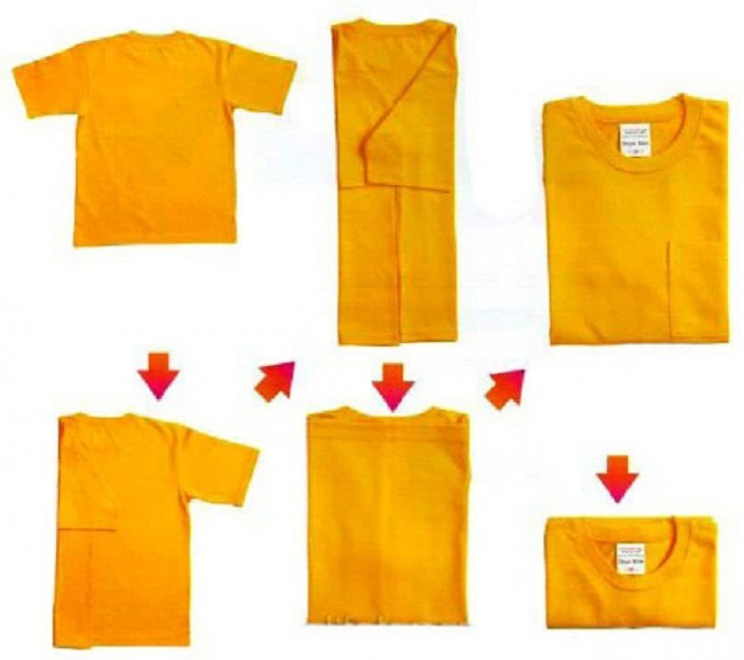 Если Вы сомневаетесь, как сложить футболки – фото-инструкция поможет разобраться во всех нюансах быстро и без проблем. Так можно паковать одежду разных фасонов и материалов
