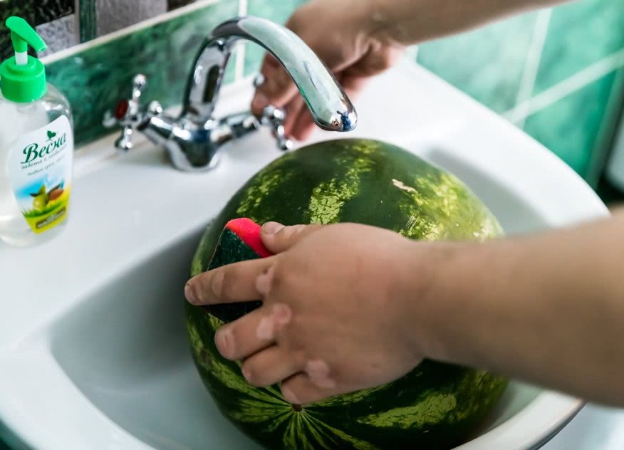 Основной момент, на который следует обратить внимание — нужно использовать только холодную воду. Арбуз должен быть погружён в нее целиком