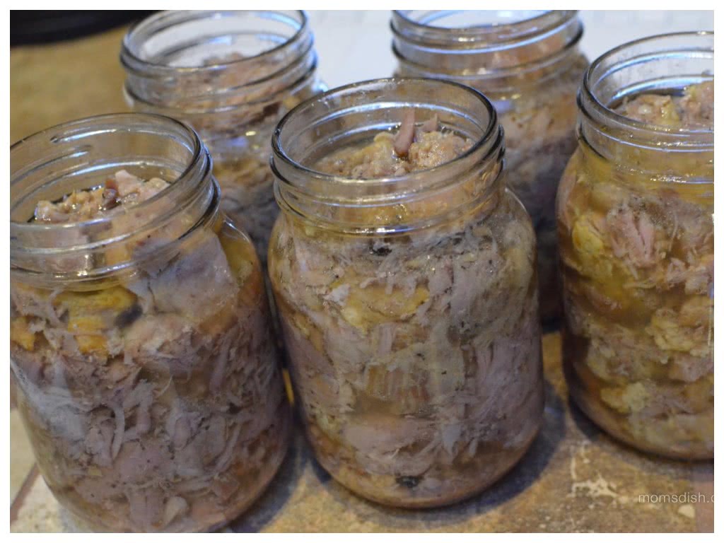 - Мясо варится до готовности, в него добавляют любимые травы, специи, соль и большое количество жира. Все это закатывается в банки. Раньше консервировали сало и мясо при помощи заливания соленым раствором, или просто пересыпали солью, закатывали в банки. Конечно, у такого способа есть масса недостатков, но если нет другого выбора, то вполне подойдет.
