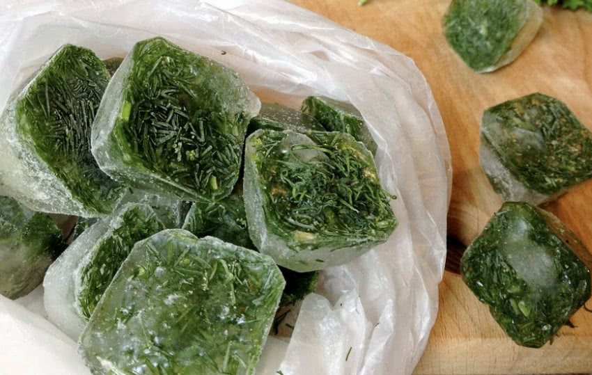 Вариант сохранения зелени отличается от остальных тем, что после тщательной обработки свежих пучков не требуется удаления жидкости. Как заморозить укроп в формочках, предназначенных для изготовления льда? Вот пошаговая инструкция: