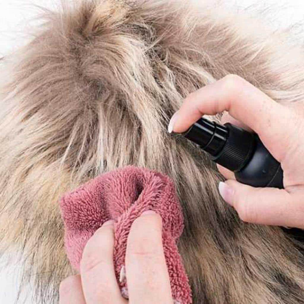Очистка с помощью спиртового раствора подходит для удаления сальных пятен и локальных загрязнений, способен устранить неприятные запахи, и даже немного подпушить подшерсток.