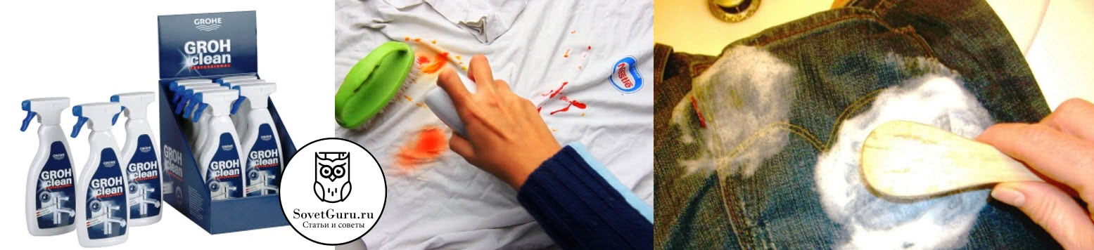 Такие составы убирают как свежую, так и застарелую ржавчину на вещах. Чтобы они стали чистыми, готовится раствор из 1 л средства, глицерина (120 мл) и воды комнатной температуры (5 л). Перед машинной стиркой запачканный материал замачивают на 6 ч. При этом накрывают таз пленкой из полиэтилена.
