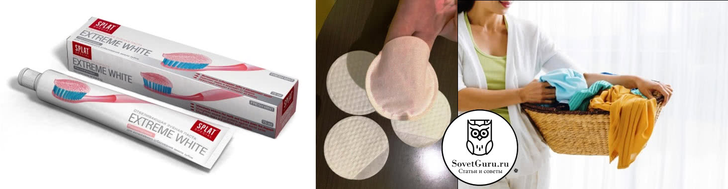 Зубную пасту следует использовать с пометкой об отбеливающем эффекте. Только в этом случае она окажет действие, аналогичное специальным пятновыводителям.