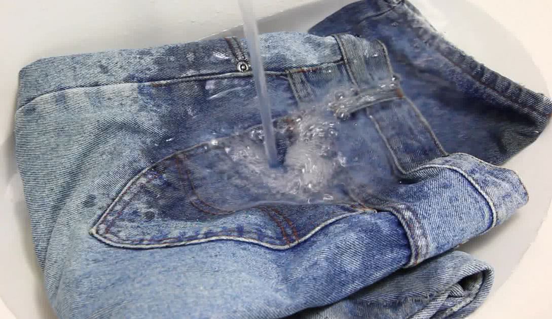 - замочите джинсы на десять-пятнадцать минут в достаточно горячей воде;