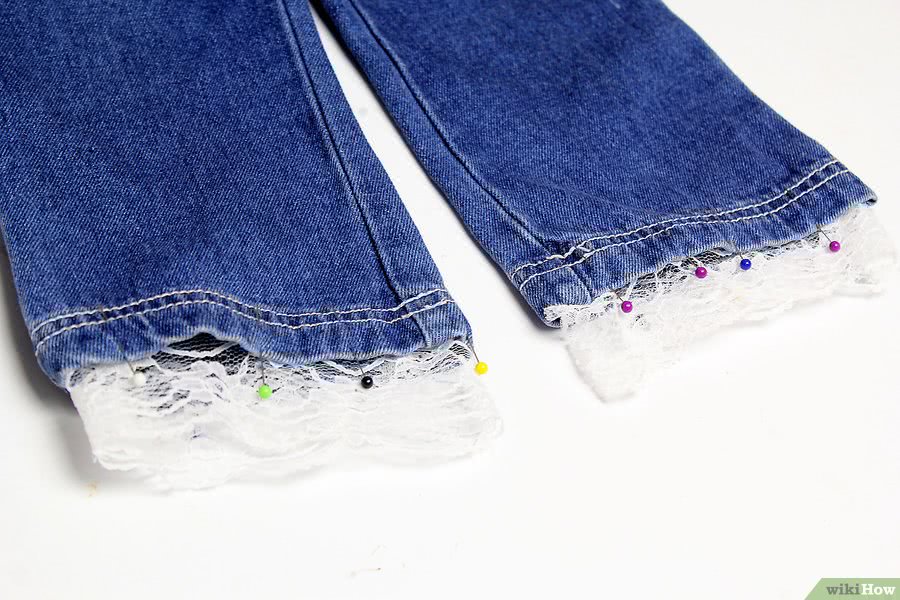 Важно: При удлинении зауженных джинсов стоит приложить кружева на оверлочный шов и выполнить по кругу фиксирующую строчку. Дизайнерский прием с кружевами применяется для женских изделий. При подборе качественной декоративной ленты вещь будет смотреться стильно